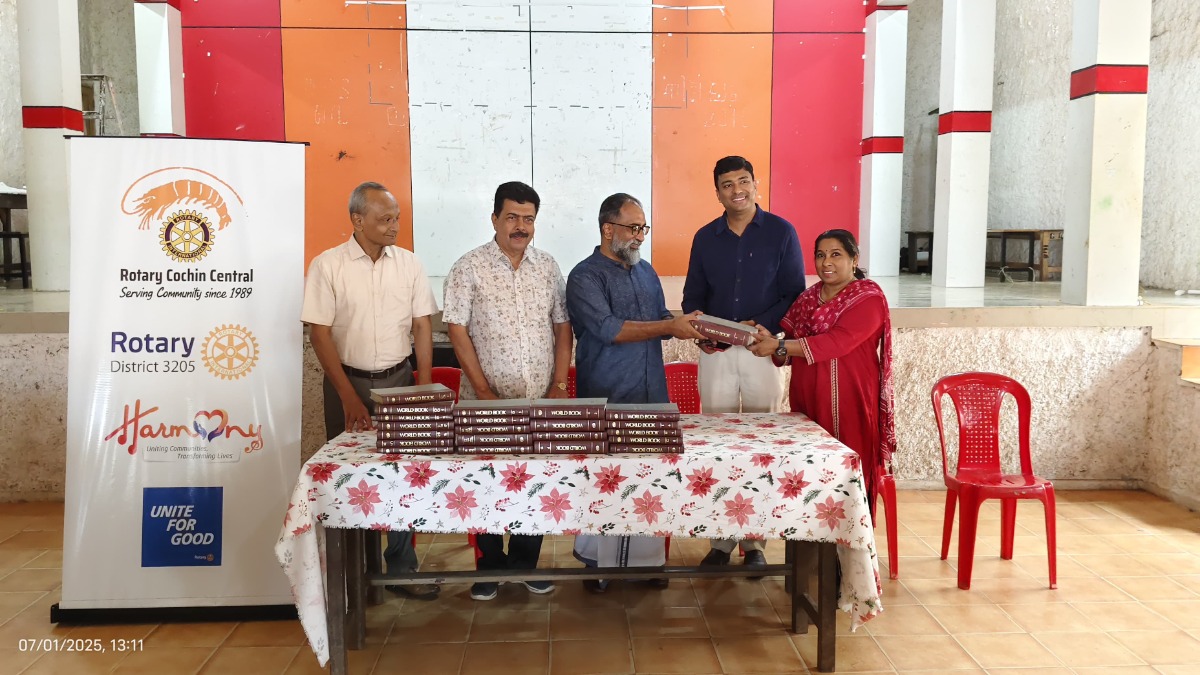 Distribution of Library books by Rotary Cochin Central to Vennala GHSS on 1st July, 2025